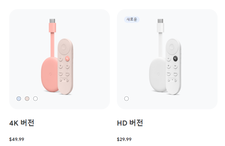 4세대 크롬캐스트는 2020년 9월에 나온 동글 형 안드로이드(Android) TV제품입니다. 예전 구세대와 비교해 봤을 때 크게 업그레이드되어 편리성을 높였습니다. 4세대 이전 크롬캐스트는 외부에서 콘텐츠를 전송해 주는 다른 기기가 있어야만 기능을 했다면  4세대는 크롬캐스트만으로도 콘텐츠를 보여줄 수 있게 되었습니다.