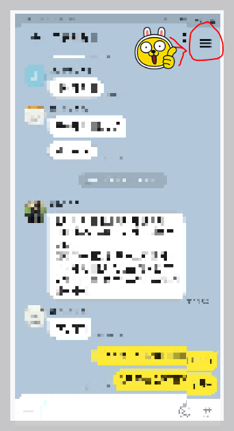④평소 나가려고 했던 단톡방의 오른쪽 상단의 [석삼자모양] 클릭 후 하단의 나가기 버튼 클릭