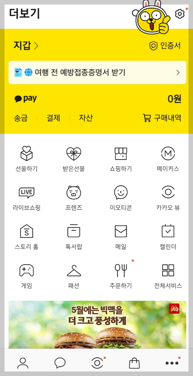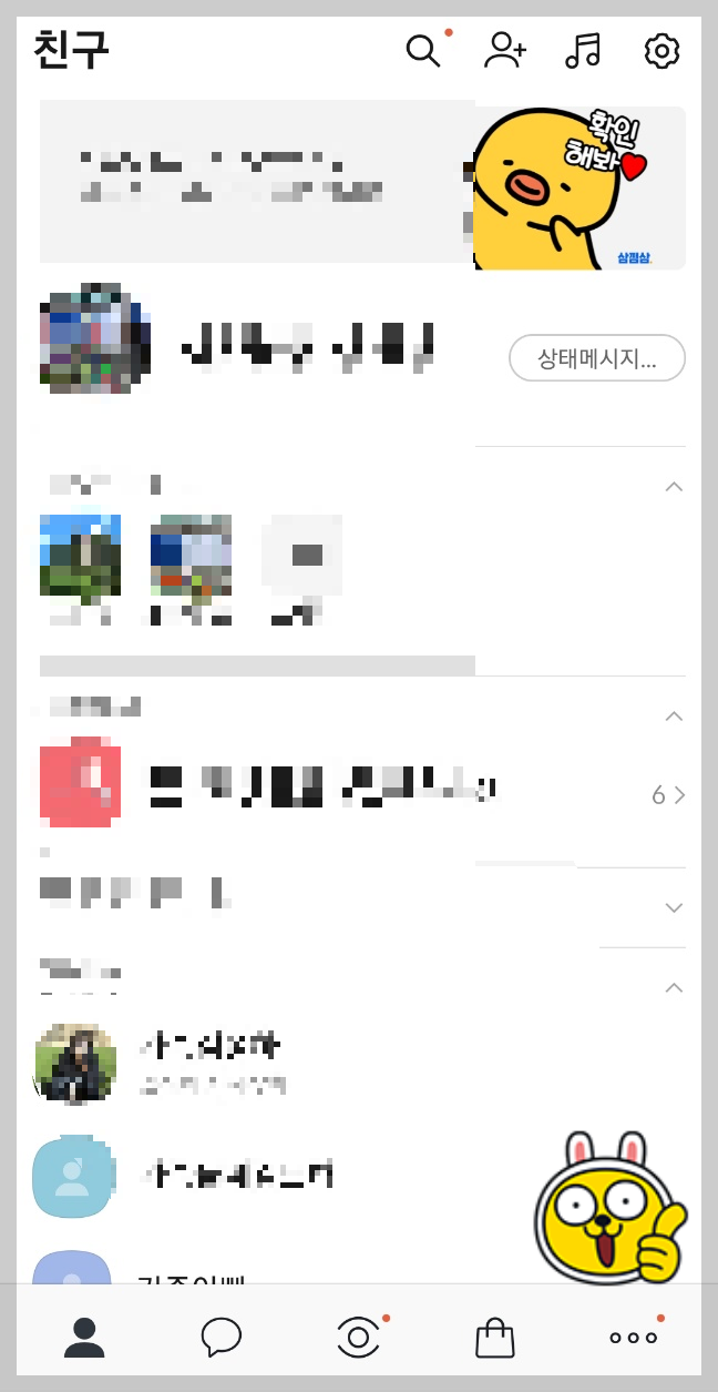 ② 친구가 보이는 화면에서 하단[...] 부분 클릭 후 '더 보기 화면'에서 [톱니바퀴모양] 클릭
