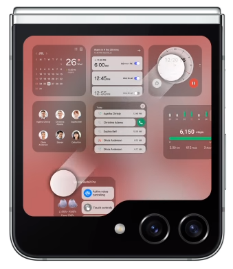 커버화면이 많이 커졌기 때문에 키보드를 통한 답장 보내기, 전화 걸기, 일기예보 확인, 지갑 꺼내기 등 멀티위젯 사용이 가능해졌습니다.