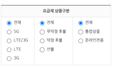 | 가입형태 | 요금제 형태 | 단말기 | USIM |