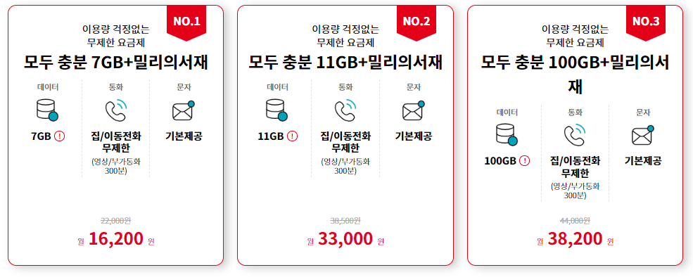 | 음성 무제한 | 통화와 데이터 무제한 |