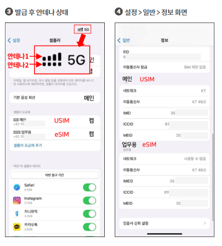 KT 알뜰폰 M모바일 애플 아이폰 단말기 eSIM 발급방법