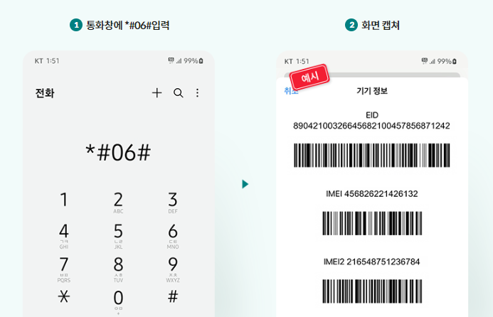 EDI 등록 > IMEI 및 32자리 EID 캡쳐화면 이미지 업로드
