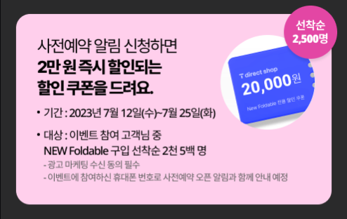 SK T다이렉트샵 갤럭시 Z 폴드 5, 갤럭시 Z플립 5 사전예약 이벤트